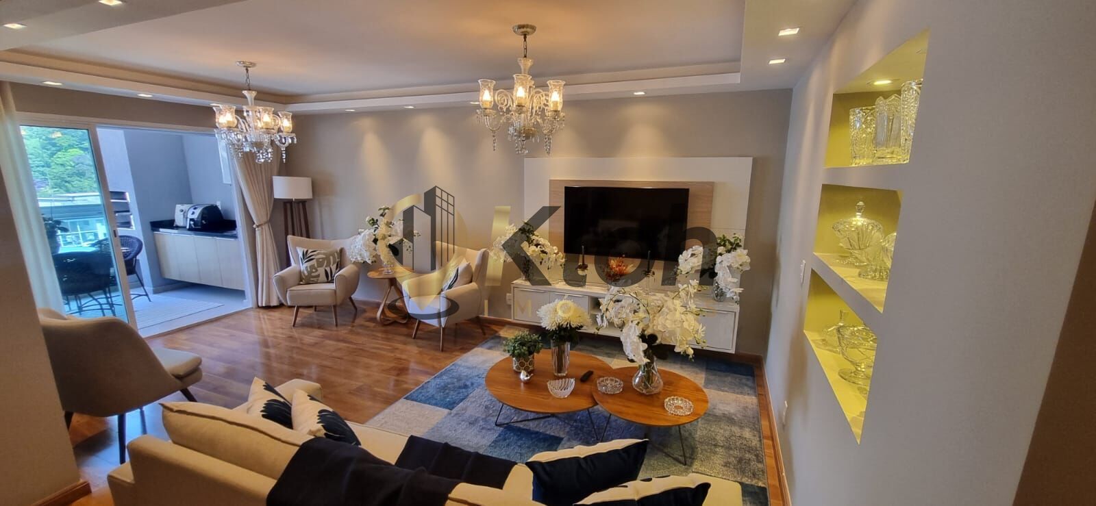 Lindo Apartamento de 2 quartos (1 suíte), com armarios planejados nos quartos, banheiros, cozinha e na varanda gourmet, possui lindo acabamento em sanca e luminárias, com 110 m² e 2 vaga de garagem na escritura.